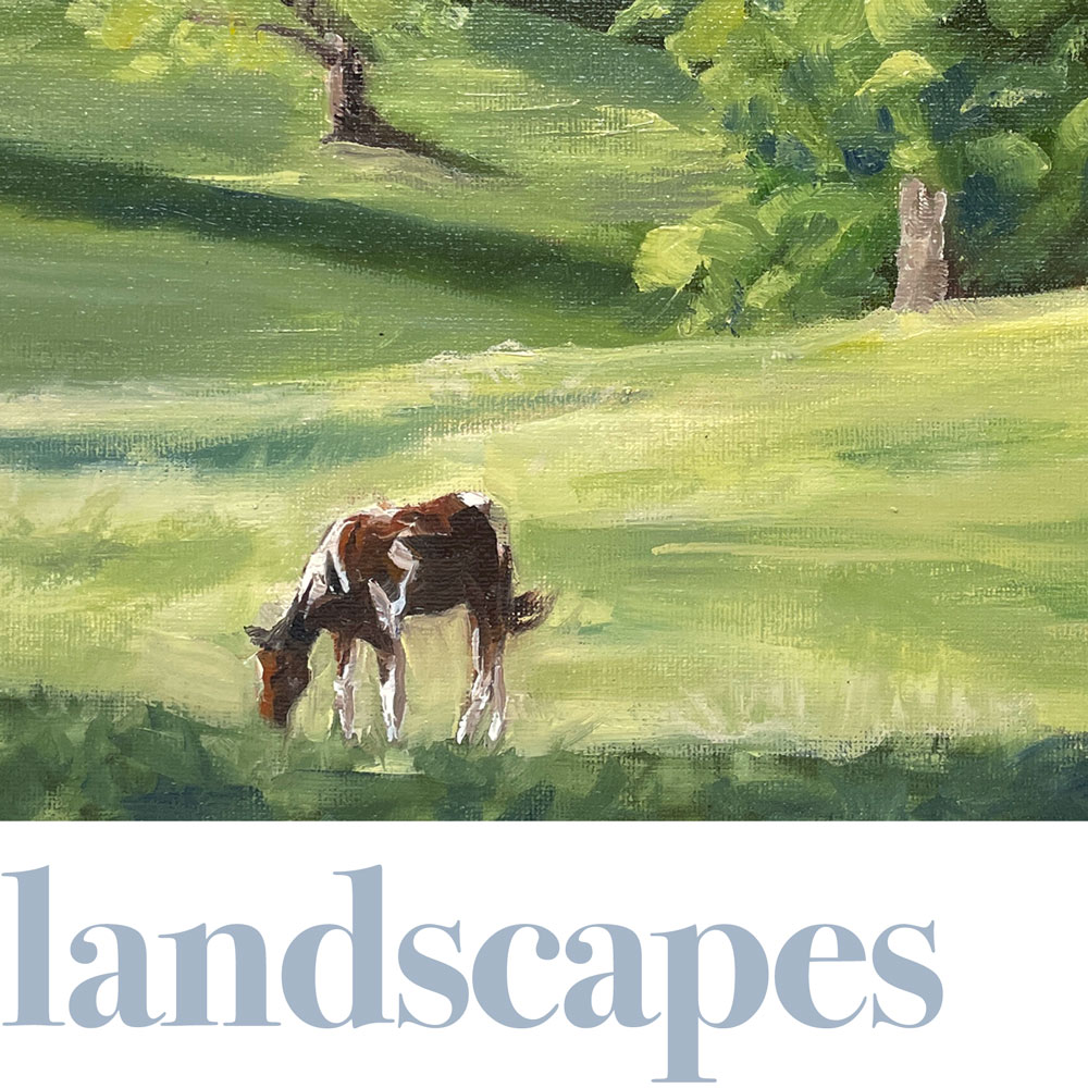 Pastoral landscapes and scenes painted with oil on various substrates ... canvas, board and paper.