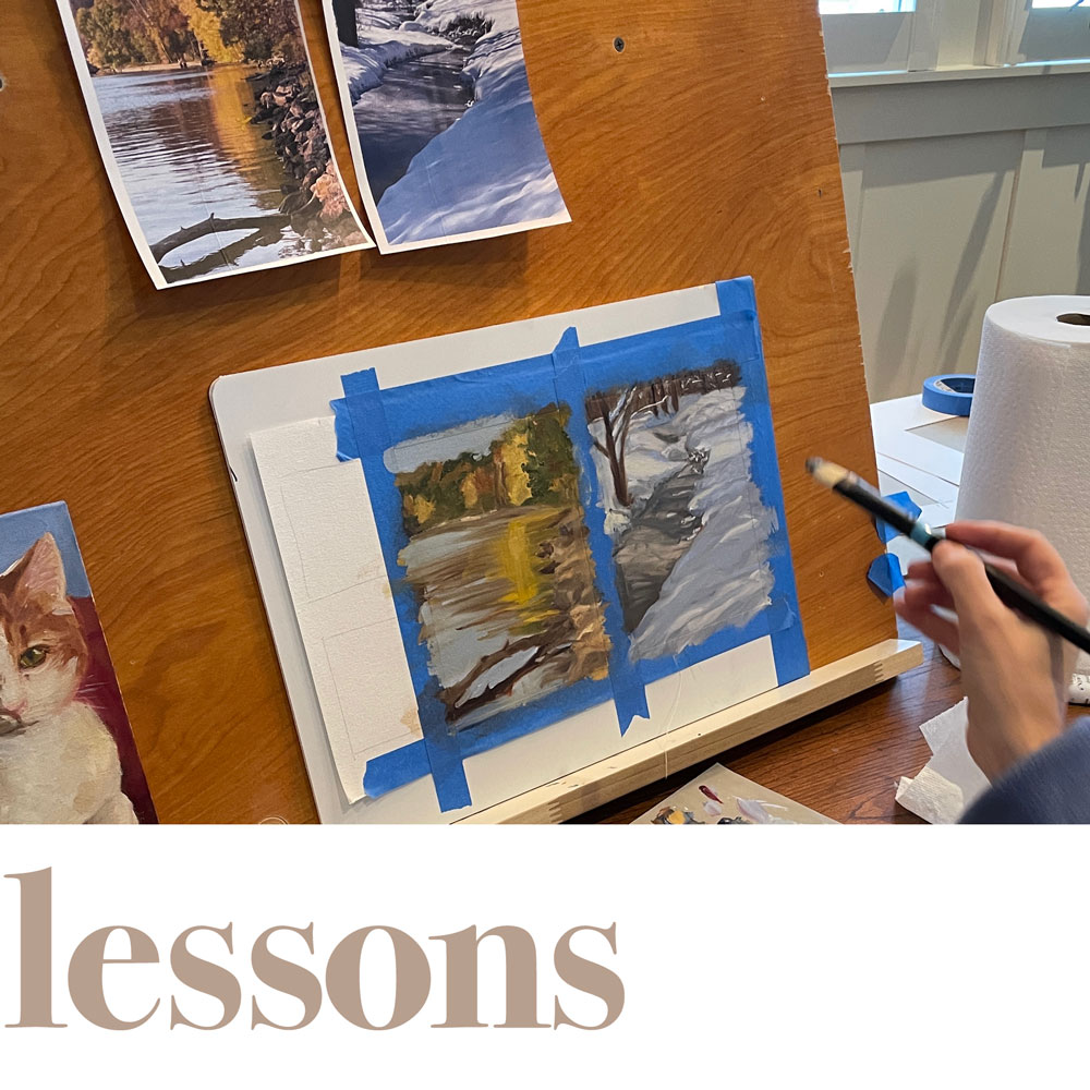 Private lessons starting with the basics or drawing and color theory and moving into comfortably painting with oils.