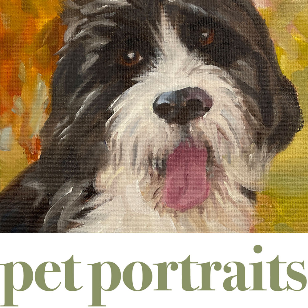 Commissioned pet portraits of your beloved furry friends painted with oil on board. Framing options.